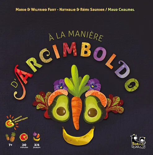 The game is played in rounds. The Master Arcimboldo takes a label half with a noun on it, and a label half with a qualifier. The Master assembles the labels (front and back allow for 4 combinations). Once the combination is chosen, the Master announces the title and places it on the table so that everyone can read it. Then the Master Arcimboldo launches the round. Each player simultaneously creates their work.