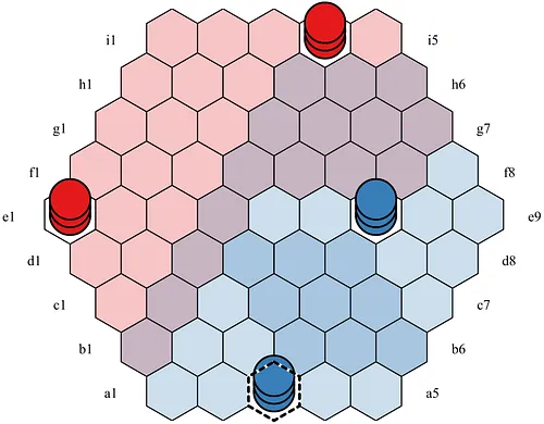 An abstract war game where pieces irradiate the spaces around them. Eliminate all opposing pieces.
