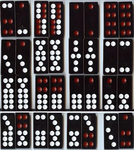 These differ from Western Dominoes in that they have no blanks. The tiles are made up of the 21 different combinations of two six-sided dice thrown, plus the 11 "duplicate copies" listed above.
