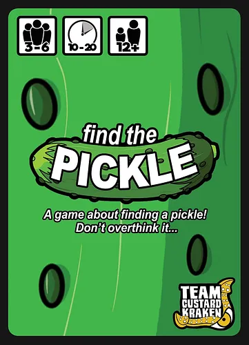 Find the Pickle is a fun card game that mixes social deduction with a bit of bluffing. Players work to steal and hide the pickle while trying to figure out who has it. With 52 silly cards, the game is designed for 3 to 6 players and typically lasts 10 to 20 minutes.