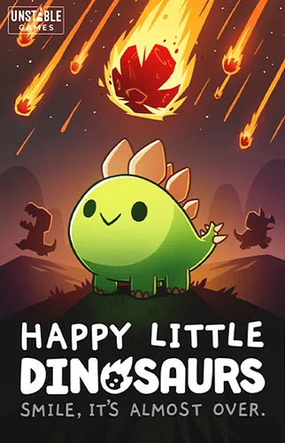 In Happy Little Dinosaurs, players take on the role of cute dinosaurs trying to survive a world filled with unexpected disasters. You'll encounter everything from hot lava pits to awkward dino dates as you navigate through the game. The goal is to be the first to reach 50 points or to be the last dinosaur standing. Each round, a Disaster card is revealed, and players will play Point cards to ga...