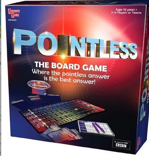 Based on the wily and compelling BBC TV quiz show, this game brings all the best features straight from the studio to your living room. How it works... Each question has been given to a group of 100 people who are asked to give as many correct answers as they can within 100 seconds. Questions are list based and will have numerous possible answers. Any correct answer given that none of the 100 people remembered would, therefore, be worth zero points - these are Pointless answers and are the holy grail for players in Pointless. Who will carry off the Pointless 'Trophy' amongst your family and friends.