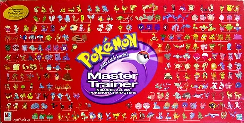 A sequel to Pokemon Master Trainer(even though this game has the exact same title), players roll dice and move their Ash pawns around the Johto Island board collecting, trading and battling Pokemon chips. Each battle won makes a Pokemon stronger. Collecting Pokemon of the same evolution set allows the player to combine their attack scores. Item cards also boost players' odds of winning battles. When all the gym bosses on the board are beaten, players total their Pokemon power and badge points to decide the winner.